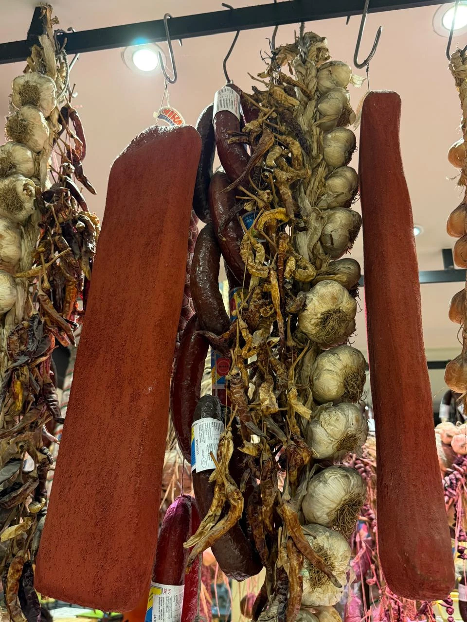 So, the process includes: selecting the best-quality meat, salting and aging, rinsing and drying, coating the meat with fenugreek (a mixture of spices with garlic), and then aging the meat again until it acquires its distinctive flavor.